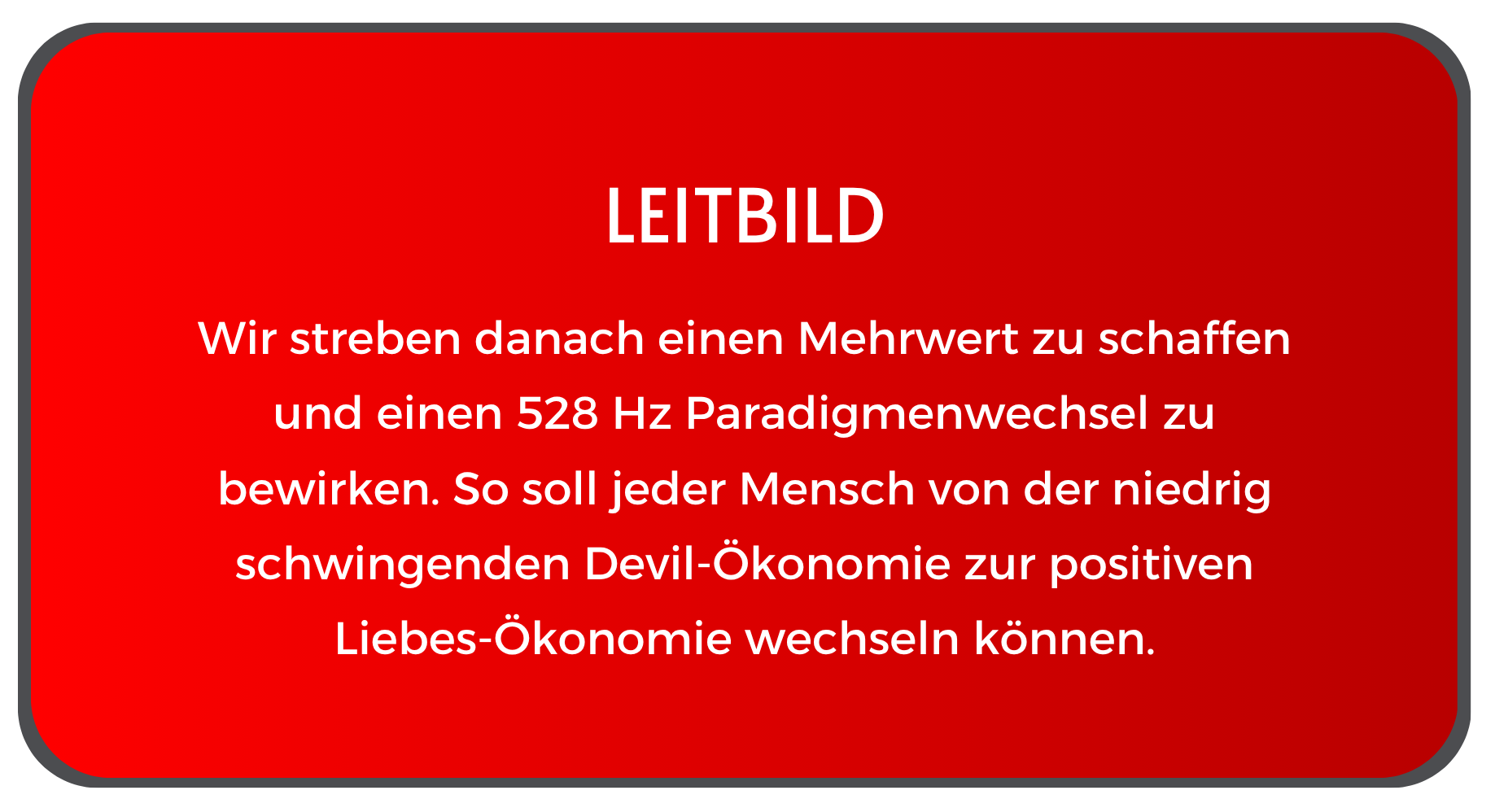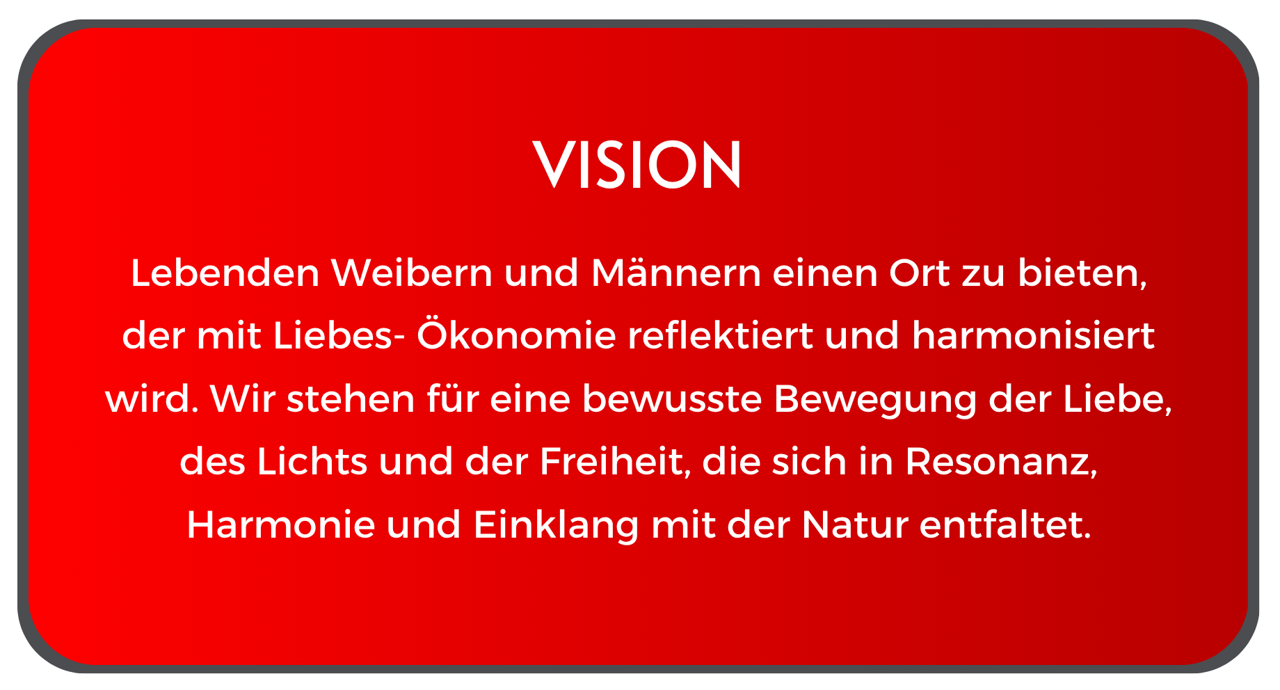 Unter dem Begriff Liebes-Ökonomie werden alle Prozesse verstanden, die von unseren Werten geprägt sind wie Liebe, Mitgefühl, Harmonie, Inspiration, Sensibilität, Inneres Wachstum, Genialität, Glück und Freiheit. Diese Prozesse werden im Einklang mit der Schöpfung gestaltet.
